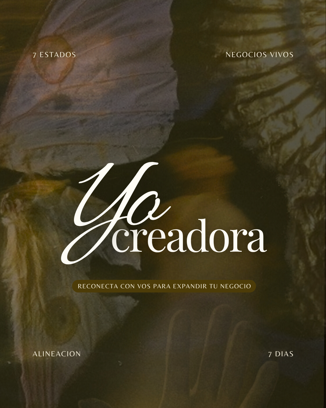 YO CREADORA es un viaje de 7 dias y 7 estados en los cuales vas a volver a escucharte, habitarte y conectar con todo eso que sos, y con lo que queres ofrecerle al mundo desde TU VERDAD